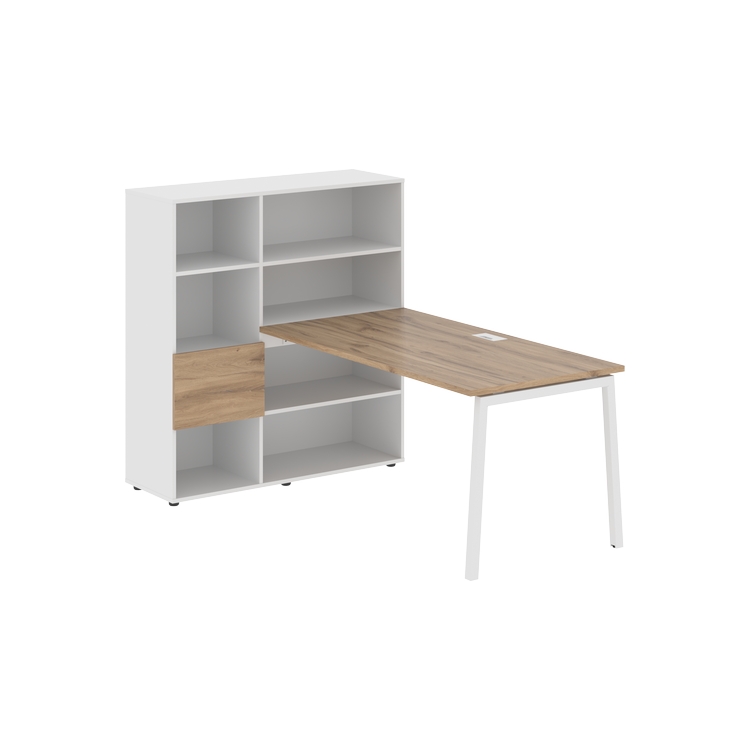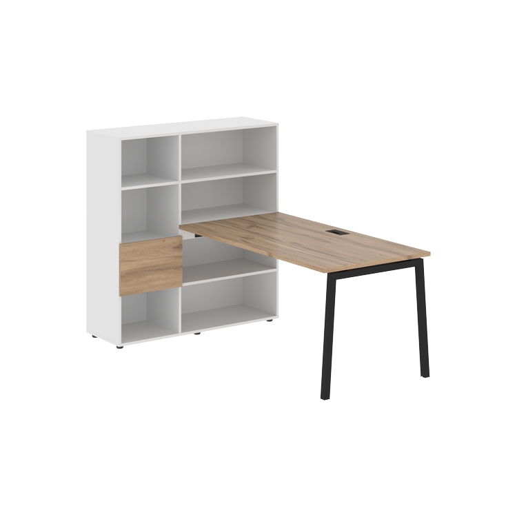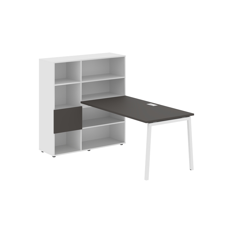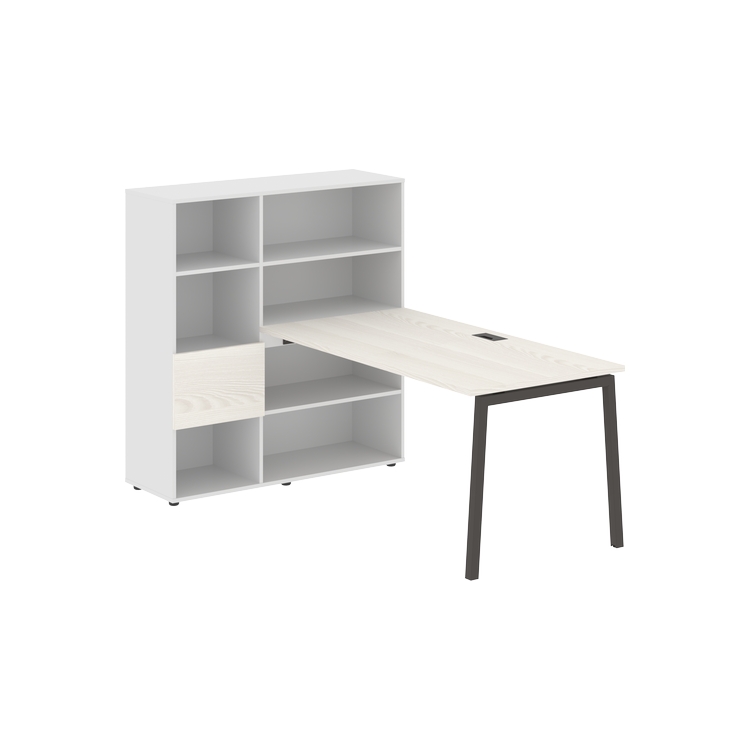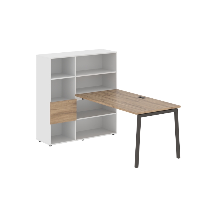 Столешница глубиной 800 мм, комплектуется регулируемой опорой L-образной формы из профиля трубы 40х40, комплектом телескопических траверс и двумя кронштейнами для крепления к стеллажу.
