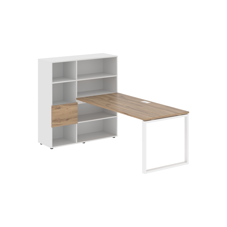 Каркасы стеллажей полностью из ЛДСП т.18 мм с кромками ПВХ т.2 и 0,45 мм, задняя стенка из ЛДСП. Комплектуется малой дверью в цвет столешницы и регулируемыми опорами h= 27 мм.
