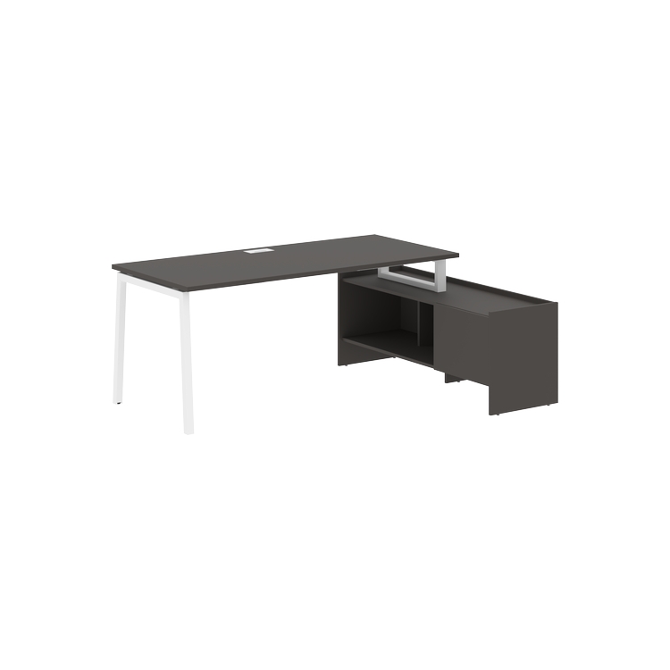 Столешница глубиной 800 мм из ЛДСП т.25 мм с кромками ПВХ по периметру т.2 мм. Комплектуется металлическим кабель-каналом габаритом 160х80х25 мм.