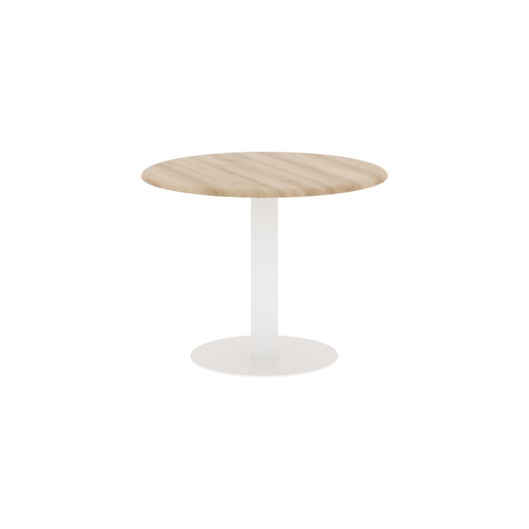 Столешница выполнена из МДФ т.19мм с фрезеровкой, покрытие - пленка ПВХ. Опора металлическая с круглым основанием, диаметр трубы 108мм , диаметр основания 600мм. Опора нерегулируемая, цвет - Белый, Антрацит, Алюминий