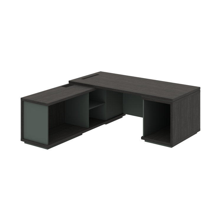 Соединитель стола выполнен из ЛМДФ Зеленый камень 18 мм с поверхностью PerfectSense Matt с лицевой стороны, видимые торцы облицованы противоударной кромкой ABS 1мм PerfectSense Matt.