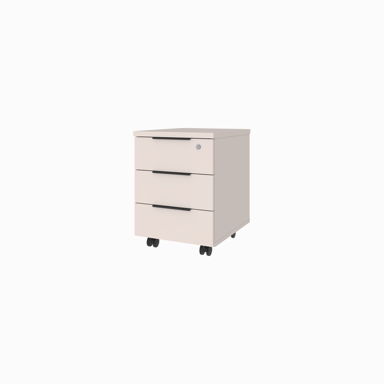 Ручки-профиль накладные, металлические, цвет – черный. Замок на 1 ящик. Опоры колесные пластиковые, цвет – черный.