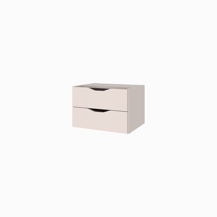 Один бок выполнен из ЛДСП 25мм, облицован кромкой толщиной 0,4мм. Остальные детали выполнены из ЛДСП толщиной 18 мм, облицованы кромкой толщиной 1мм. Дно ящиков – ХДФ, цвет – белый. Направляющие длиной 350мм шариковые полного выдвижения с доводчиком. Фасады без ручек, с фигурным вырезом для открывания ящика. Собирается на правую и левую сторону.